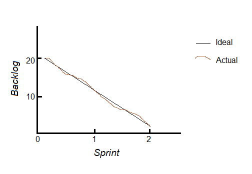 Burndown Chart: It is a chart that is used to measure progress during each iteration. If X-axis gets the sprints or time and Y-axis gets backlog or workload, then we get: